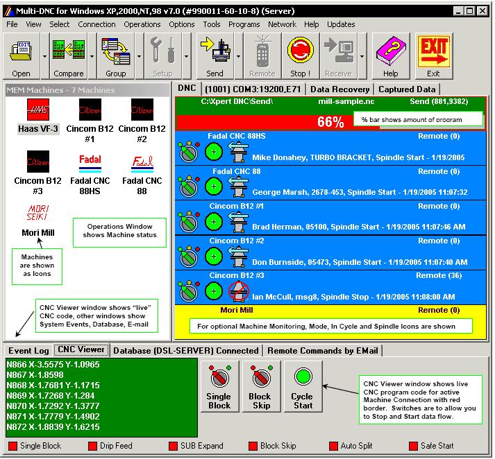 Multi-DNC™ es un software de comunicación con máquinas, un sistema de comunicación multi-hilos, y administración de archivos, que permite subidas y bajadas simultáneas a múltiples controles CNC. Incluye.